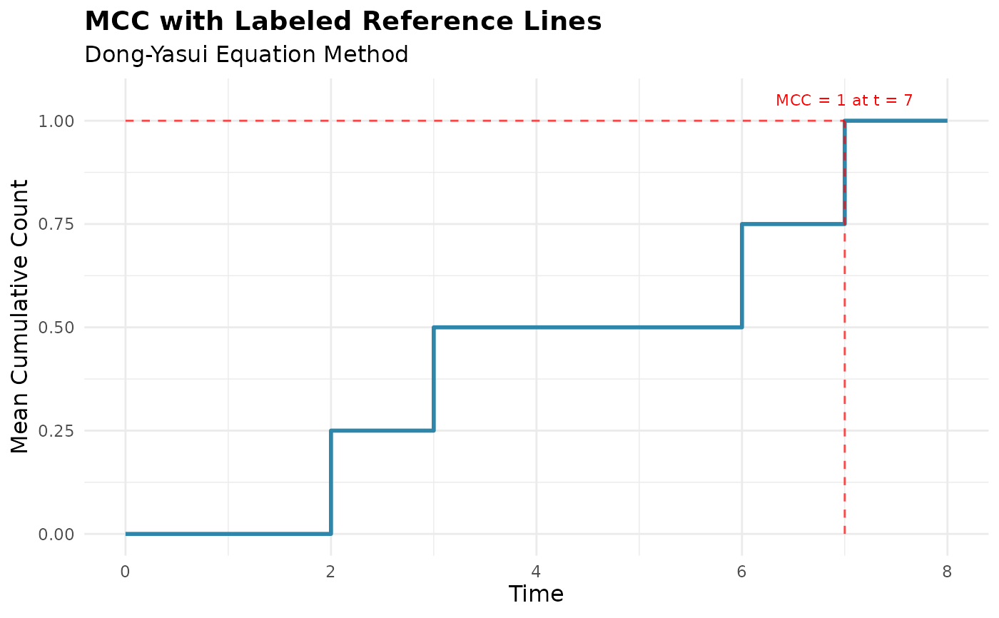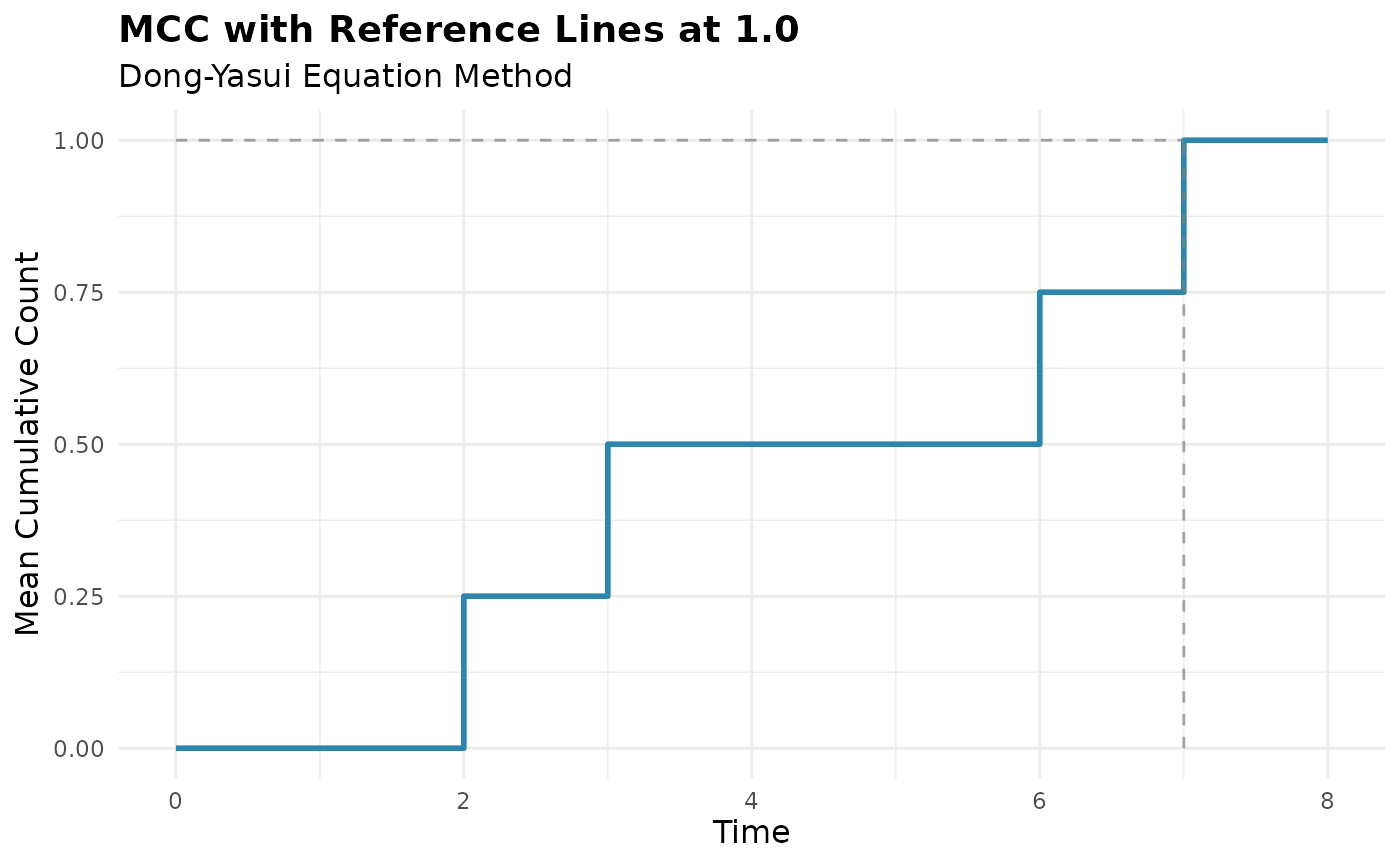 Adds horizontal and vertical reference lines to mark when the Mean Cumulative